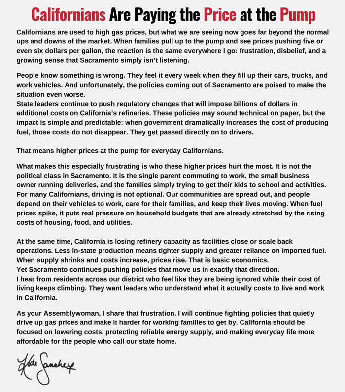 Californians Are Paying the Price at the PumpMarch 13, 2026Around the 71st Previous Post Sacramento’s Energy Policies Are Driving Up the Cost of Living